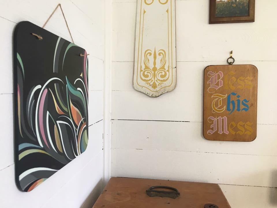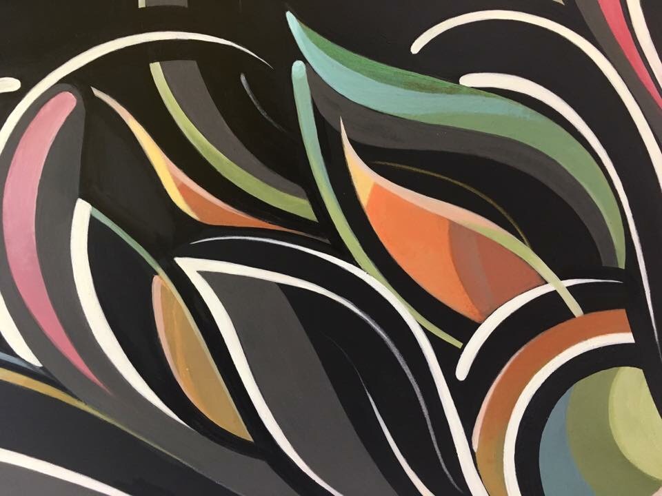 This is a little painting was created based on the loose idea of combining sunflowers with solar/sun rays, and power. It was painted using acrylic and house paints on a small wooden panel. This piece is *Sold – 2017